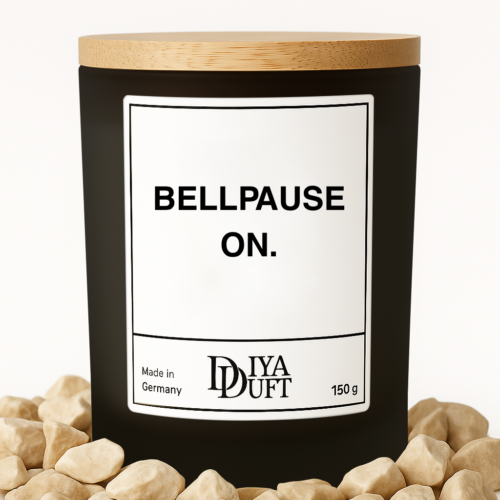 „bellpause on.“ ist die Kerze für alle, die mit Hunden leben – und trotzdem manchmal Ruhe wollen. Ob nach dem Gassi, beim Homeoffice oder einfach zum Durchatmen: Diese Kerze ist ein kleiner Wink mit dem Duftglas.
