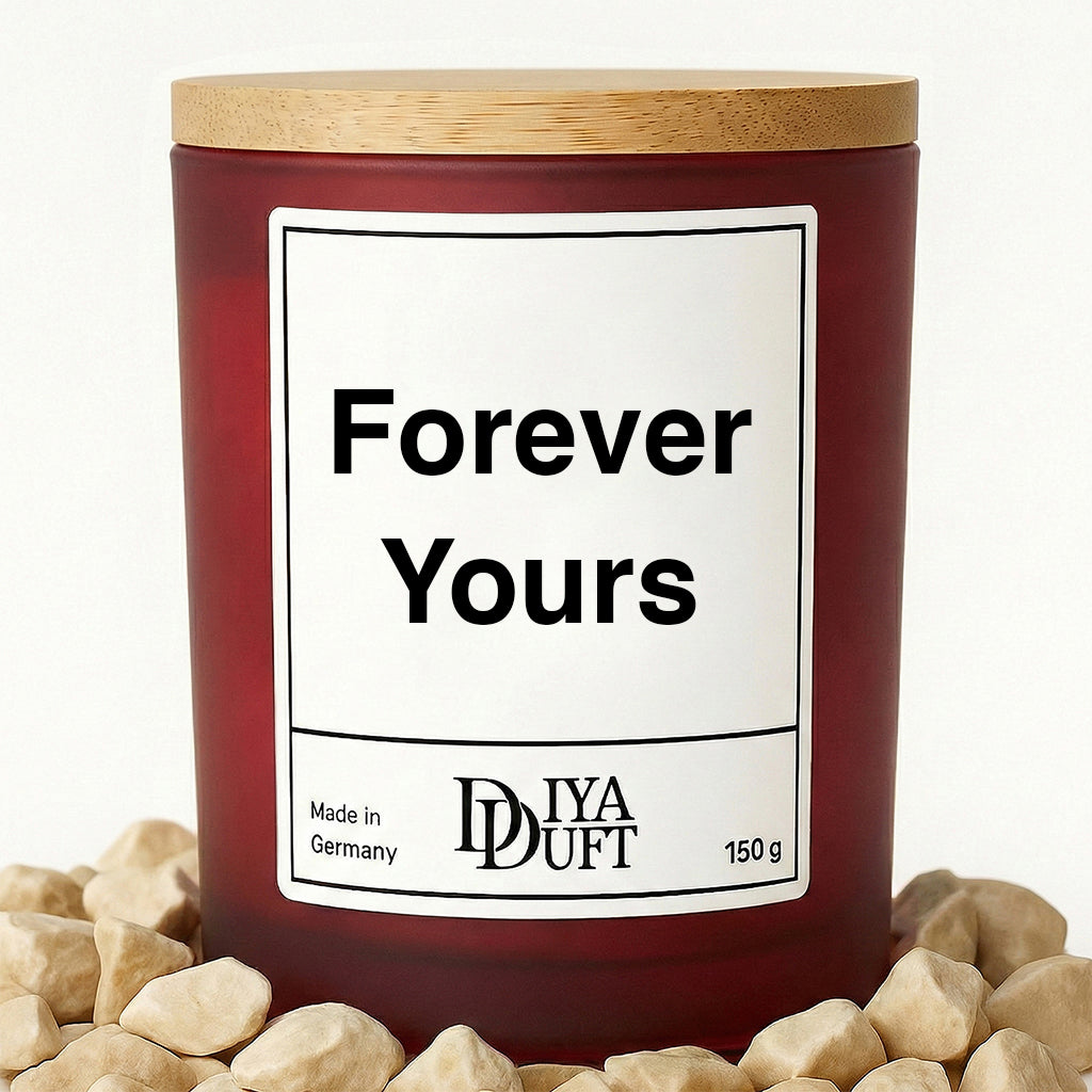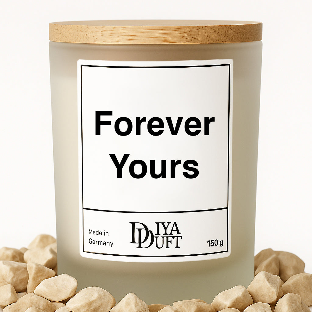 Manche Worte sagen mehr als tausend Geschenke. Die Spruchkerze „Forever Yours“ steht für Liebe, Nähe und gemeinsame Momente.