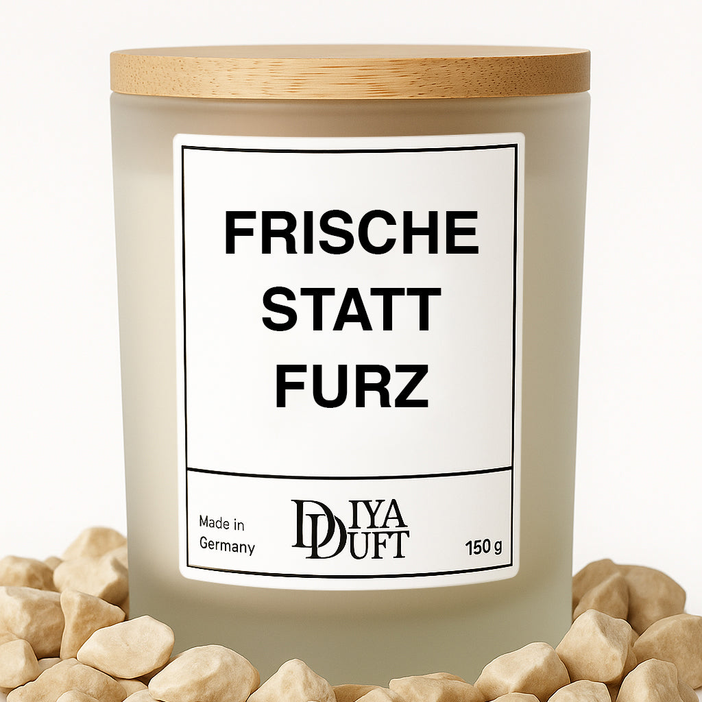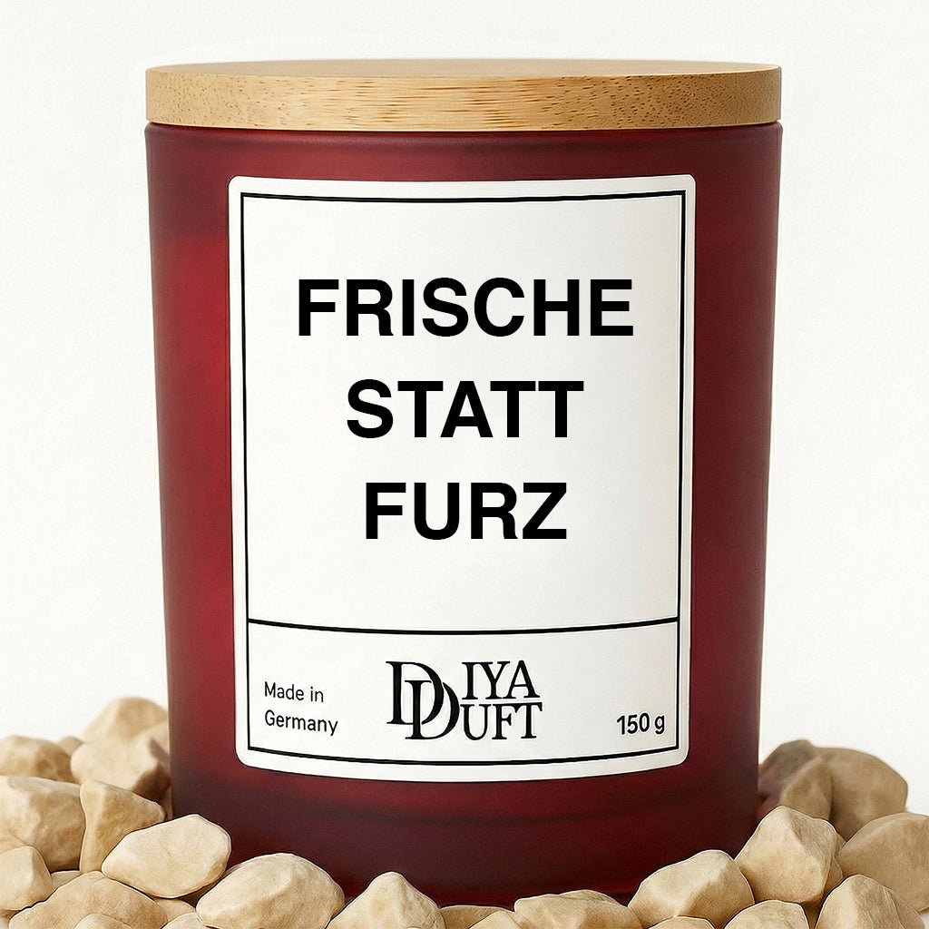 Unsere Haustiere machen unser Leben schöner – und manchmal auch ein bisschen… intensiver 😉 Die Spruchkerze „FRISCHE STATT FURZ“ bringt Humor, Wärme und Gemütlichkeit in dein Zuhause.