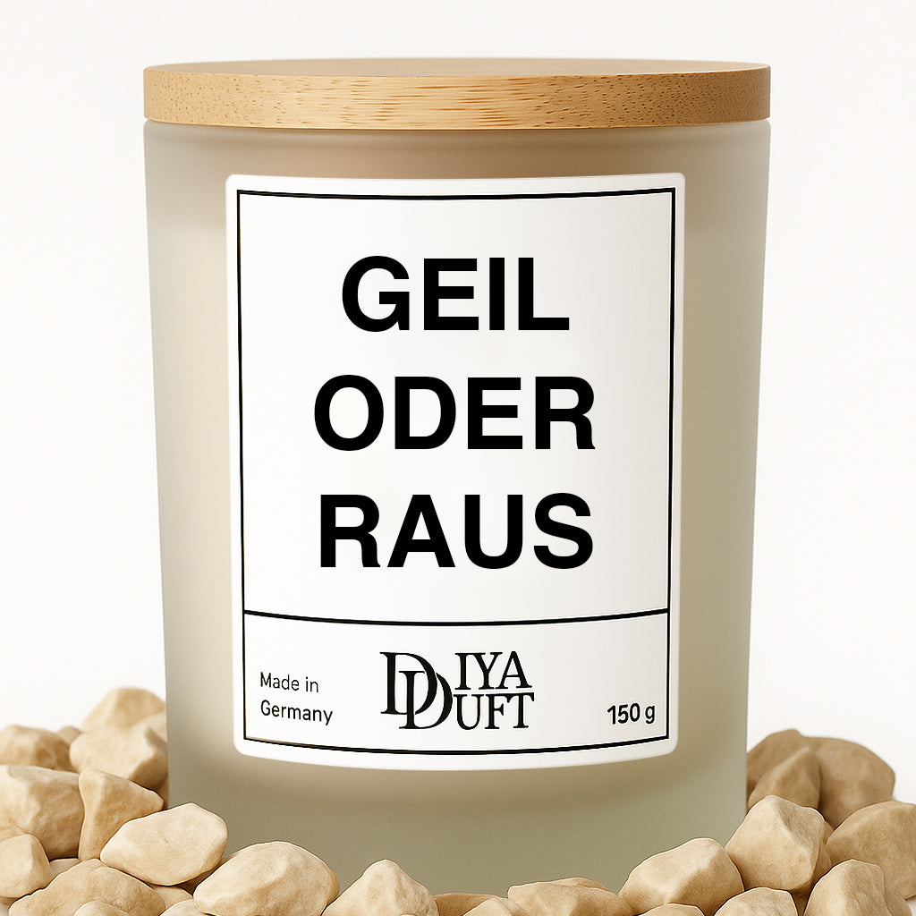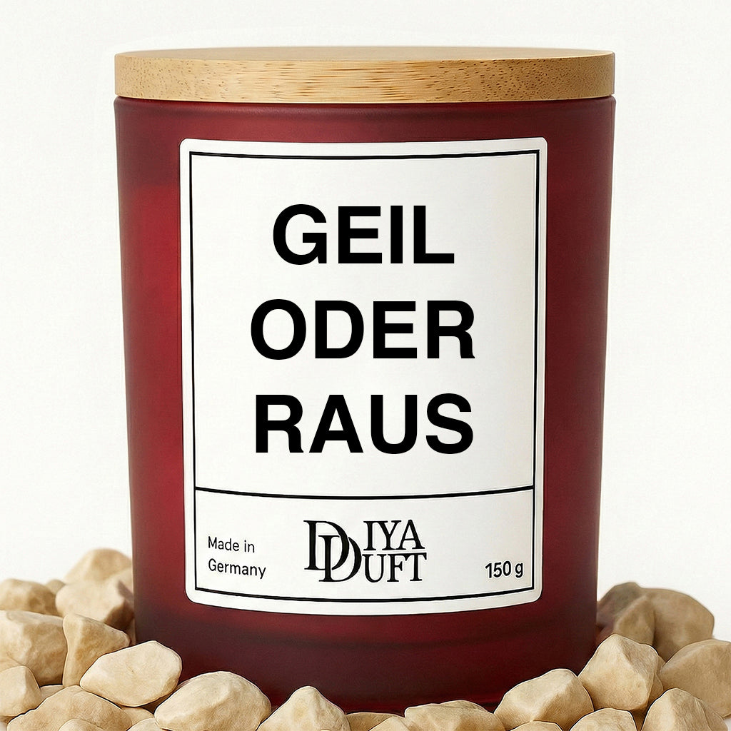 Diese Kerze steht für knisternde Stimmung, Nähe und intensive Momente. „GEIL ODER RAUS“ ist gemacht für Abende, an denen das Licht gedimmt, die Atmosphäre heiß und der Moment ganz bei euch ist.