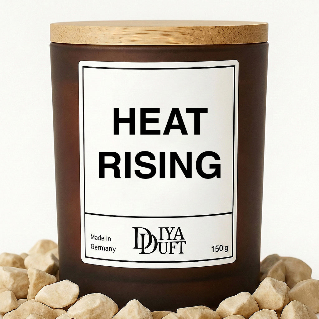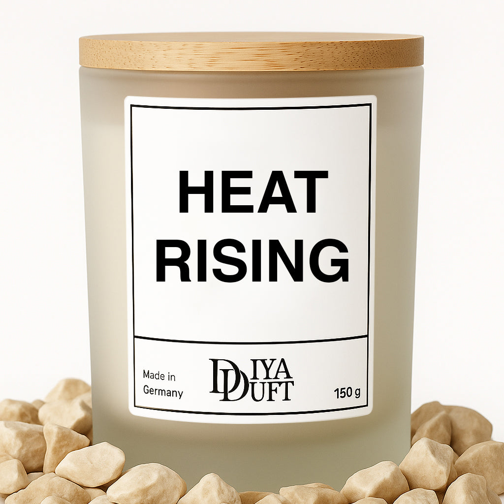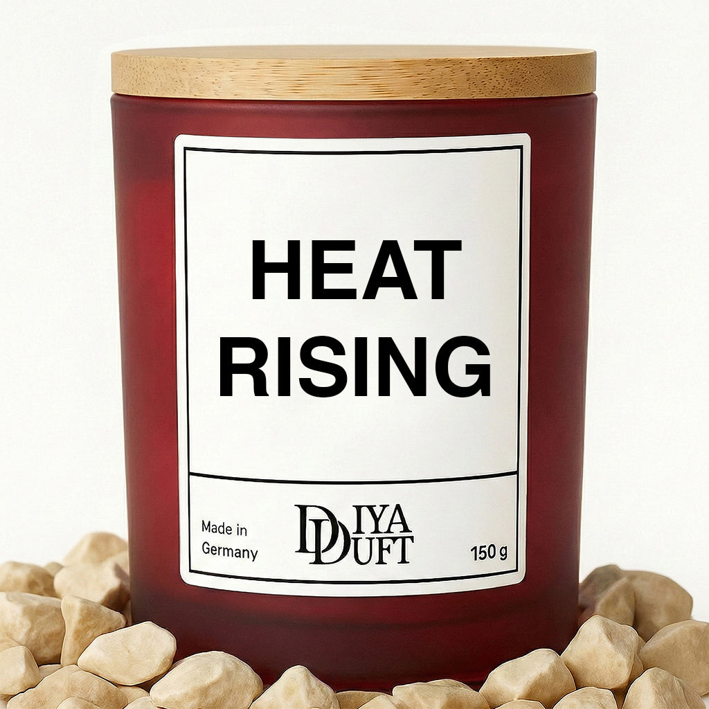Diese Kerze steht für knisternde Stimmung, Nähe und intensive Momente. „HEAT RISING“ ist gemacht für Abende, an denen das Licht gedimmt, die Atmosphäre heiß und der Moment ganz bei euch ist.