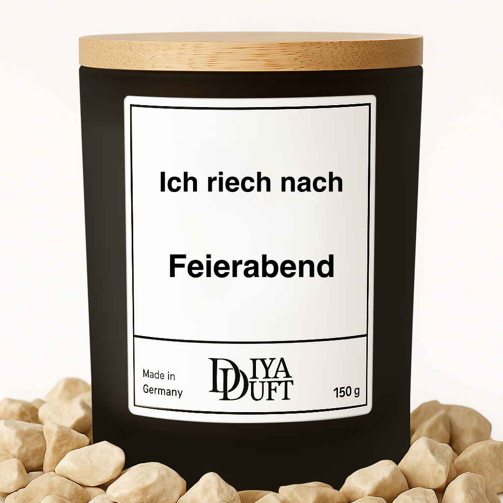 „ich riech nach feierabend“ ist die Kerze für alle, die genug gearbeitet, genug geredet – und sich jetzt einfach etwas Ruhe verdient haben.