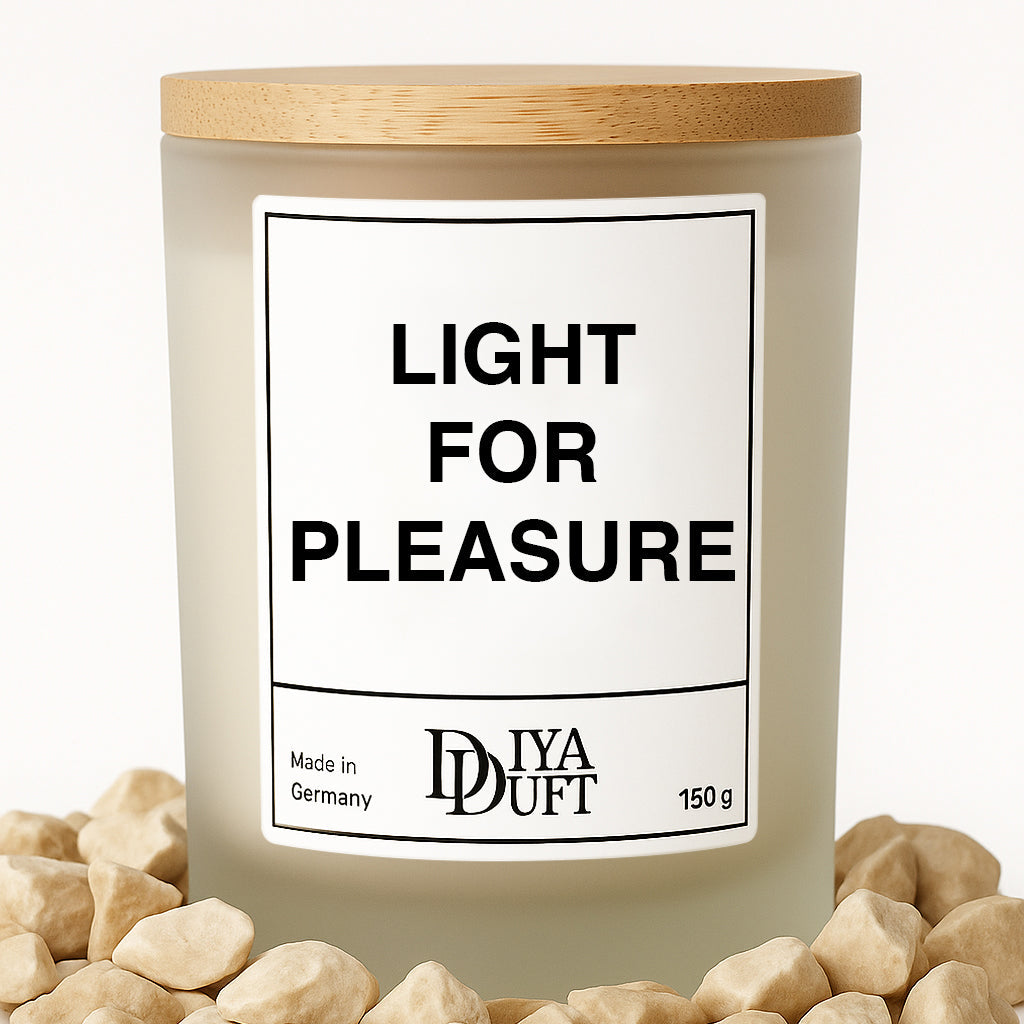 Diese Kerze steht für knisternde Stimmung, Nähe und intensive Momente. „LIGHT FOR PLEASURE“ ist gemacht für Abende, an denen das Licht gedimmt, die Atmosphäre heiß und der Moment ganz bei euch ist.