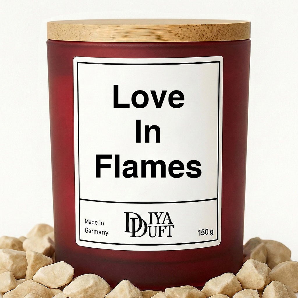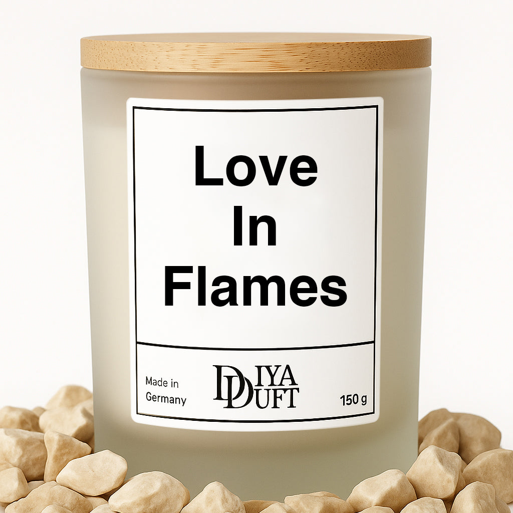 Manche Worte sagen mehr als tausend Geschenke. Die Spruchkerze „Love In Flames“ steht für Liebe, Nähe und gemeinsame Momente.