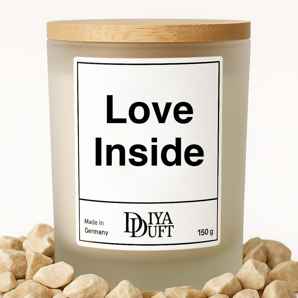 Manche Worte sagen mehr als tausend Geschenke. Die Spruchkerze „Love Inside“ steht für Liebe, Nähe und gemeinsame Momente.